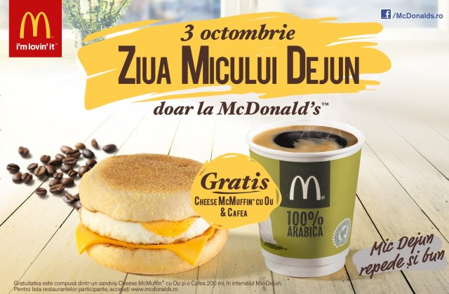 McDonald’s e Gata de Buna Dimineata cu un meniu diversificat si produse preparate ca acasa din cele mai proaspete ingrediente: oua, unt, bacon si cafea din boabe proaspat macinate. Micul dejun de la McDonald’s incurajeaza consumatorii sa inceapa dimineata cu energie si buna dispozitie. Oul – ingredientul vedeta al micului dejun de la McDonald’s