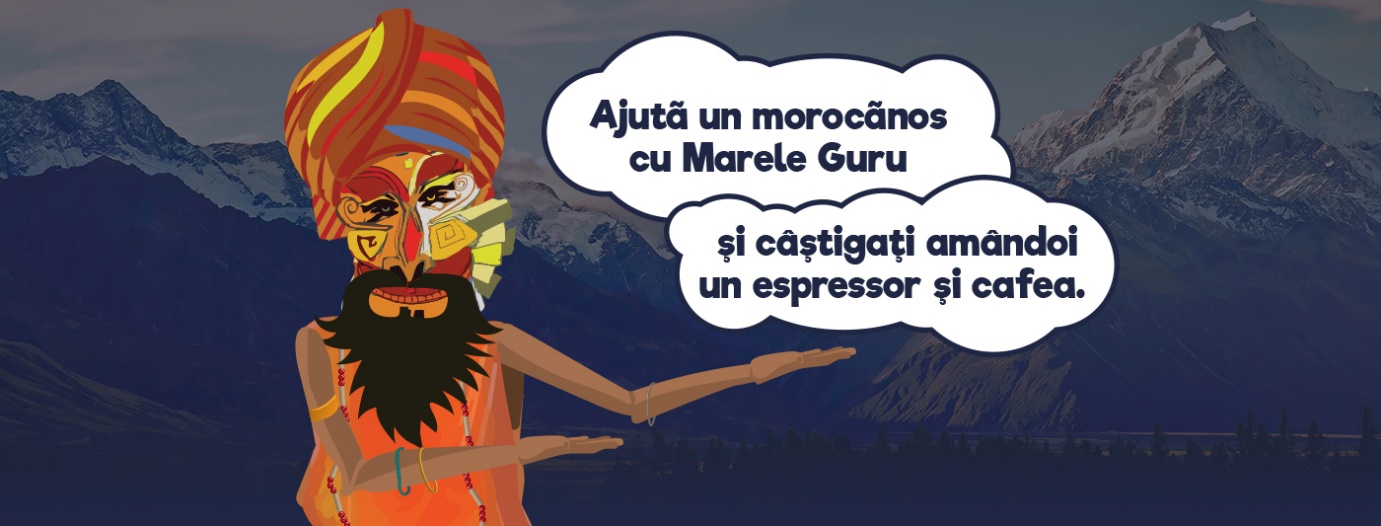 Intra pe aplicatia „Ajuta un morocanos!” de pe Facebook ca sa-i ceri sfatul Marelui Guru in legatura cu morocanosenia prietenului sau prietenei! E simplu: ii tastezi numele, primesti sfatul si-l dai mai departe cu tag la prietenul morocanos! Iar prin asta nu numai ca vei reusi, poate, sa-i smulgi un zambet – dar poti castiga, pentru tine si prieten, doua espressoare KAFUNE si cafea pentru sase luni. Nu de alta, dar sa aveti cu ce va intinde la sfaturi despre viata.