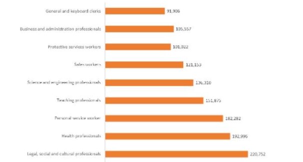 Conform Biroului de Statistică a Forței de Muncă din Statele Unite, femeile care au carieră în domenii precum cel al sănătății, juridic, management sau tehnologic au cele mai bine plătite meserii.