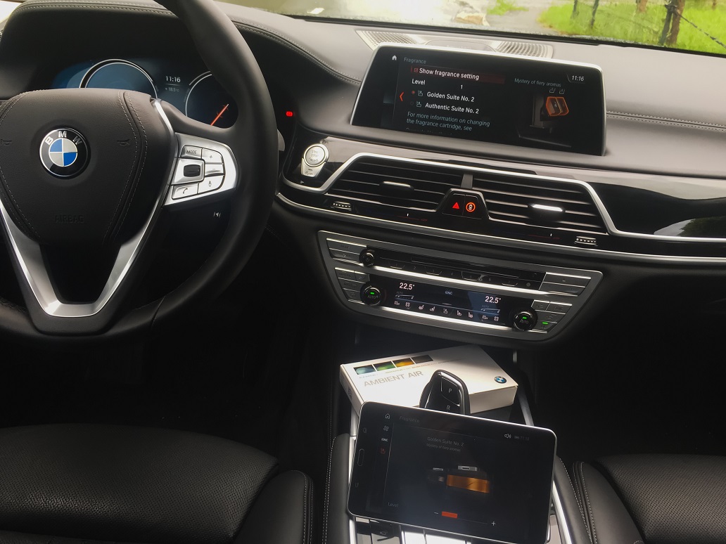 Folosind modul Adaptive poti sa-ti vezi de drum linistit. Calculatoarele vor incerca s-ajusteze totul aproape de perfectiune pentru ca tu sa nu simti denivelarile drumului. Stim cum este A2 pana la km 40, asadar ansamblul acesta pus la dispozitia celor care urca-n Seria 7 pentru a-i face sa se simta cat mai bine cu putinta si-a castigat admiratia mea. Odata intrati pe autostrada, pasagerii VIP din spate nu s-au trezit. In plus, chiar daca motorul este diesel, de-abia il auzi. Avantajul lui, dupa cum stiu marea majoritate a soferilor e ca la drum lung consumul este destul de mic, chiar si pe o astfel de limuzina care cantareste peste doua tone. Cutia este un alt factor important in toata aceasta mare lume a confortului, astfel ca cea de pe Seria 7 m-a facut sa cred ca s-ar putea s-avem o masina electrica pe mana c-o singura viteza, incat chiar nu-ti dadeai seama cand efectua schimbarea. Cireasa de pe tort a fost aerul conditionat ionizat care poate fi setat pe trei trepte. Semana cu ce am mai testat pe Seria 5, insa in Seria 7 aroma era una mult, mult mai placuta.