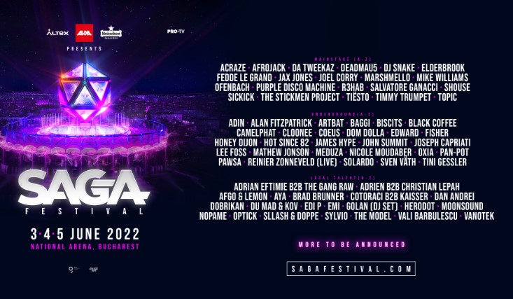 Cei care își doresc să facă parte din mișcarea SAGA, să se bucure de un concept unic în România și să se distreze împreună cu Marshmello, Tiesto, Deadmau5, DJ Snake, Salvatore Ganacci, Afrojack, James Hype, Fisher, Meduza și alți peste 150 de Dji au acum posibilitatea să aleagă din mai multe variante de bilete.