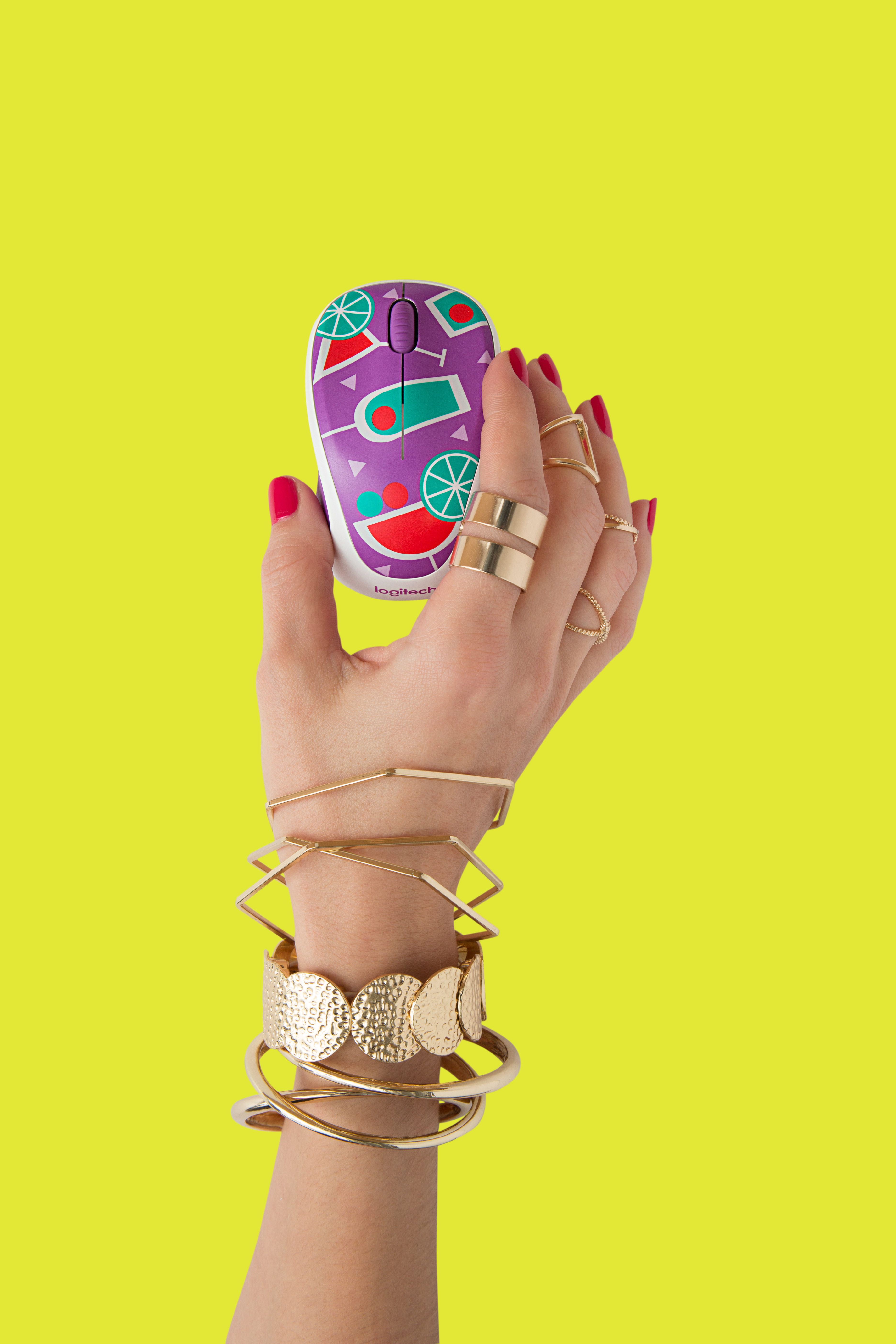 Inspirati de stilul Memphis al anilor ’80 ce pune accent pe imagini luminoase si pe un design cu modele grafice in culori contrastante mousii din noua colectie Party sunt un mare mash-up de obiecte si lucruri preferate ca pepenii verzi, pasarile flamingo, acadelele si altele. Indrazneata serie de modele a colectiei de anul acesta aduce un dram de fantezie designului modelului de mouse Logitech® M238 Wireless. Acest mouse fara fir reflecta intr-un mod distractiv, atitudinea extrema a culturii pop din ziua de astazi.