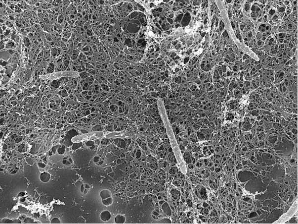 Totusi, desertul Atacama nu este complet pustiu. Unele microorganisme endolite au gasit o cale sa se agate de porii rocilor, unde gasesc suficient de multa apa incat sa supravietuiasca. "Reusesc sa sustina o intreaga comunitate de organisme, e fascinant", spune Jocelyne DiRuggiero, miocrobiolog la Universitatea Johns Hopkins.
