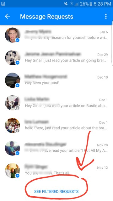 5. Apasati pe ,,SEE FILTERED REQUESTS' si vedeti ce mesaje a decis Facebook sa nu va arate.