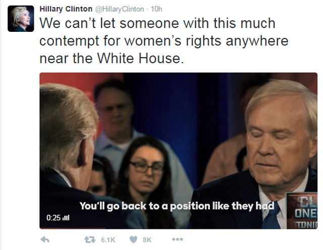 In pofida acestei decizii, subiectul ramane arzator in Statele Unite, intre sustinatorii dreptului femeilor la avort (pro-choice) si opozanti (pro-life). Afirmatiile lui Trump i-au infuriat pe cei din tabara pro-choice, in randul carora se afla si rivala sa Hillary Clinton. Clinton a denuntat, intr-un mesaj postat pe Twitter, aceste afirmatii ca "terfiante si revelatoare". "Nu puteti lasa pe cineva cu un asemenea dispret fata de drepturile femeilor sa se apropie de Casa Alba", a scris ea in alt tweet in care se aud declaratiile lui Trump.