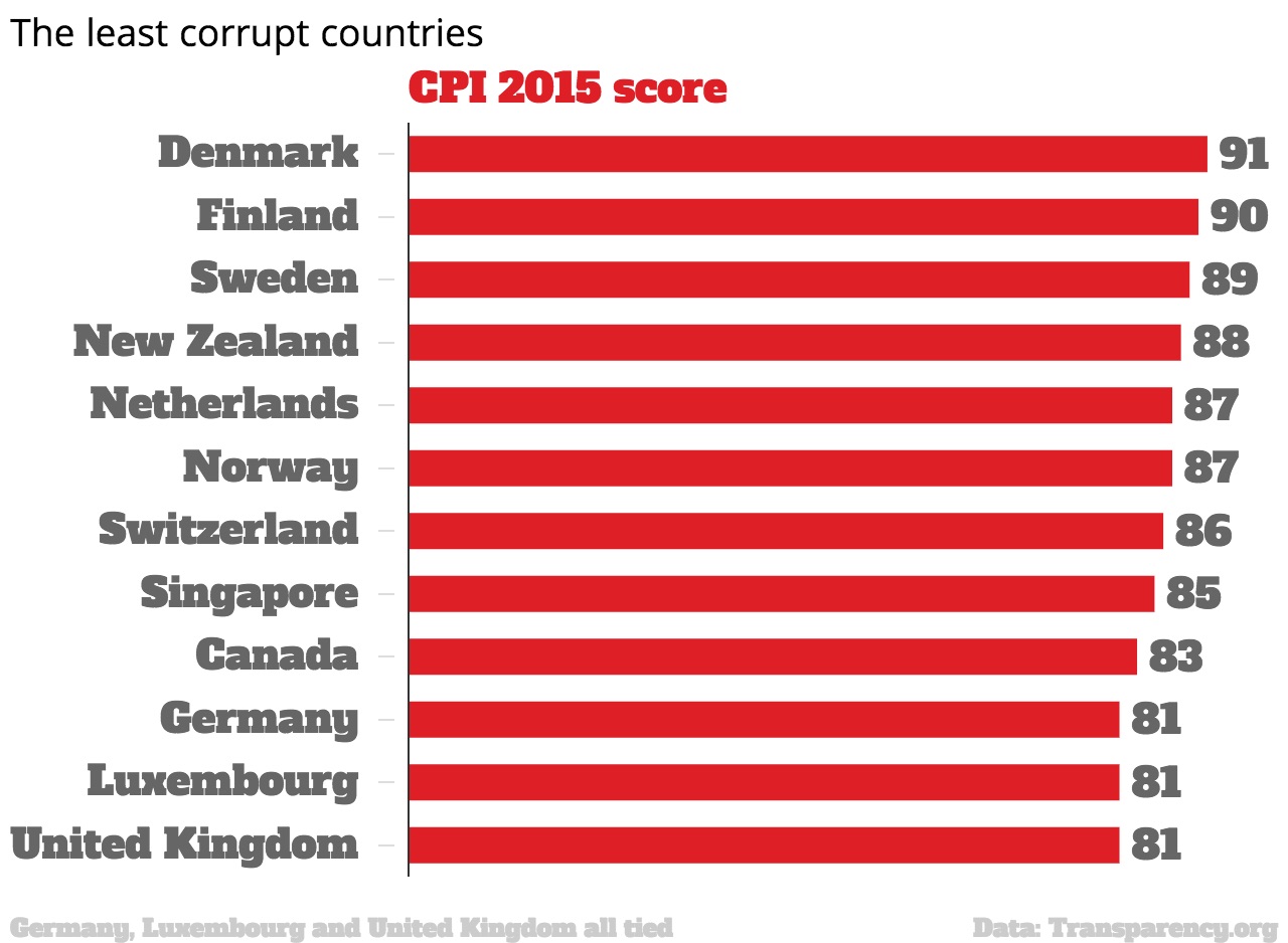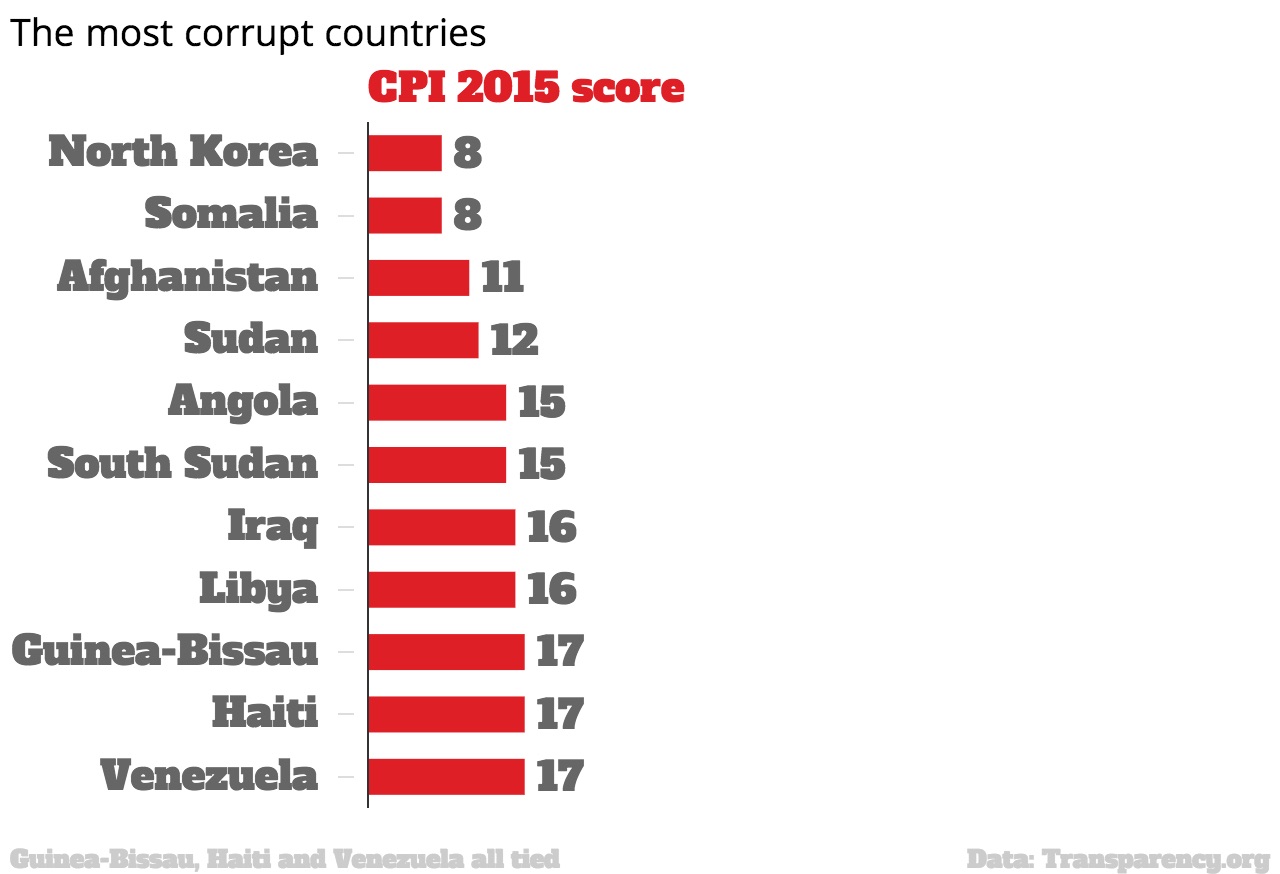 Indexul coruptiei pe 2015 cuprinde un top de 169 de tari care au fost analizate in privinta gradului de coruptie.
