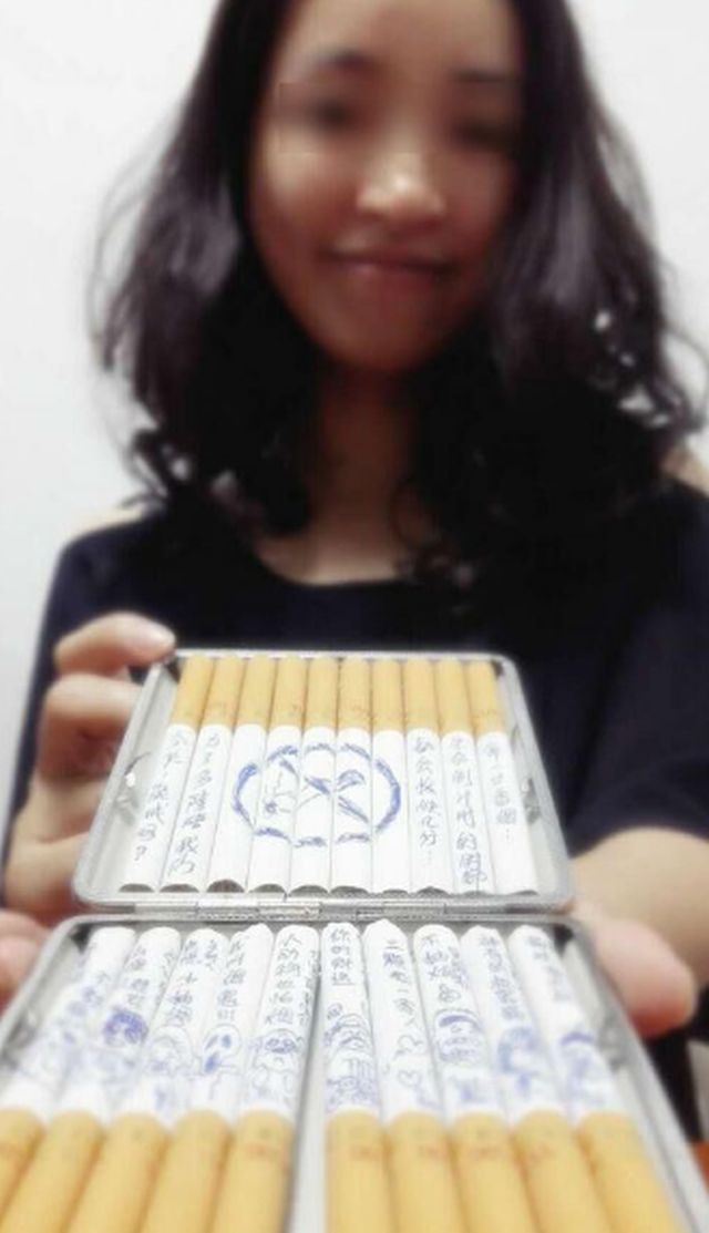 Odata cu punerea in aplicare a legii care interzice fumatul in zonele publice ale Beijingului, oamenii gasesc noi modalitati pentru a se lasa de fumat. Acesta este si cazul unei chinezoaice care i-a facut cadou sotului ei, cu ocazia Zilei Mondiale fara Tutun, o tabachiera plina cu tigari pe care erau desenate diferite mesaje motivationale, scrie mashable.com, citati de hotnews.