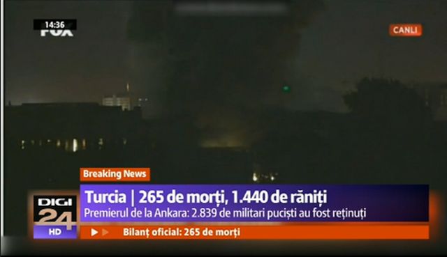 [UPDATE 14.15] Bilantul loviturii de stat din Turcia a fost revizuit de autoritati. Potrivit Digi24 in acest moment sunt 265 de morti si 1.440 de raniti. Totodata 2.839 de militari pucisti au fost retinuti.