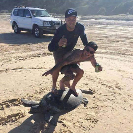 Imaginea, incarcata pe Facebook cu descrierea "Facem surf pe o broasca testoasa, in weekend" a provocat un val de indignare in mediul virtual si a fost vazuta si de Michael Beatty, reprezentant au unui centru de prevenire a violentei impotriva animalelor, care a decis sa ia masuri, scrie huffingtonpost.com.