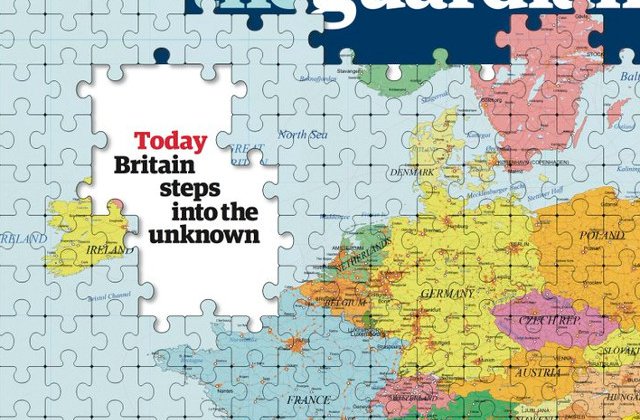The Guardian a publicat pe prima pagina un puzzle cu harta Europei din care lipsesc piesele ce ar fi trebuit sa reprezinte Marea Britanie.