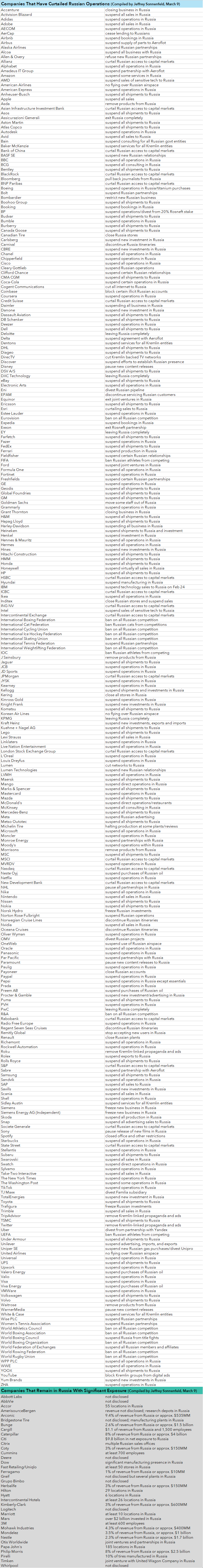 Lista companiilor care au părăsit Rusia de la începutul războiului