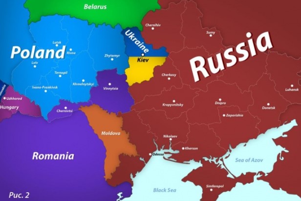 Pe una din hărţile publicate de fostul preşedinte rus, şapte regiuni ucrainene sunt trecute la Polonia, una la Ungaria, două la România şi 13 regiuni plus Peninsula Crimeea la Rusia. Astfel, Ucraina ar rămâne doar cu regiunea Kiev, conform hărţii publicate de Medvedev în ziua în care Ucraina sărbătoreşte, pentru prima oară, Ziua statalităţii.