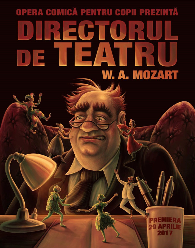 A doua zi dupa Gala, pe 29 aprilie, de la ora 10:00, copiii si parintii sunt asteptati la o noua premiera a Operei Comice pentru Copii, in Salonul Mozart: opera “Directorul de Teatru”, de W.A. Mozart, in regia maestrului Cristian Mihailescu. Spectacolul original este destul scurt, insa regizorul roman a venit cu o serie de completari ingenioase, care vor prelungi bucuria spectatorilor. Personajul central este un impresar, “Der Schauspieldirektor”, care, asistat de Buffo - cantaretul comic, organizeaza auditii pentru alcatuirea unei trupe de opera. Regizorul Cristian Mihailescu introduce in acest casting plin de batai de cap si personaje extrem de cunoscute din alte opere celebre ale lui Mozart. Astfel, avem ocazia sa-i ascultam la auditii pe Susanna si Marcellina din “Nunta lui Figaro”, pe Monostatos, Papageno si Papagena din “Flautul Fermecat”, dar si pe Pedrillo din “Rapirea din Serai”.