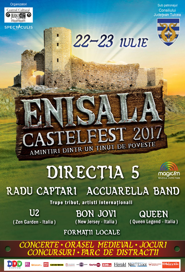 Sub patronajul Consiliului Judetean Tulcea, Centrul Cultural „Jean Bart” Tulcea si Asociatia Culturala Spectaculis organizeaza festivalul „ENISALA CASTELFEST 2017”, in perioada 22-23 iulie a.c., la Cetatea Enisala - singura cetate medievala din Dobrogea (situata pe raza comunei Sarichioi din judetul Tulcea).