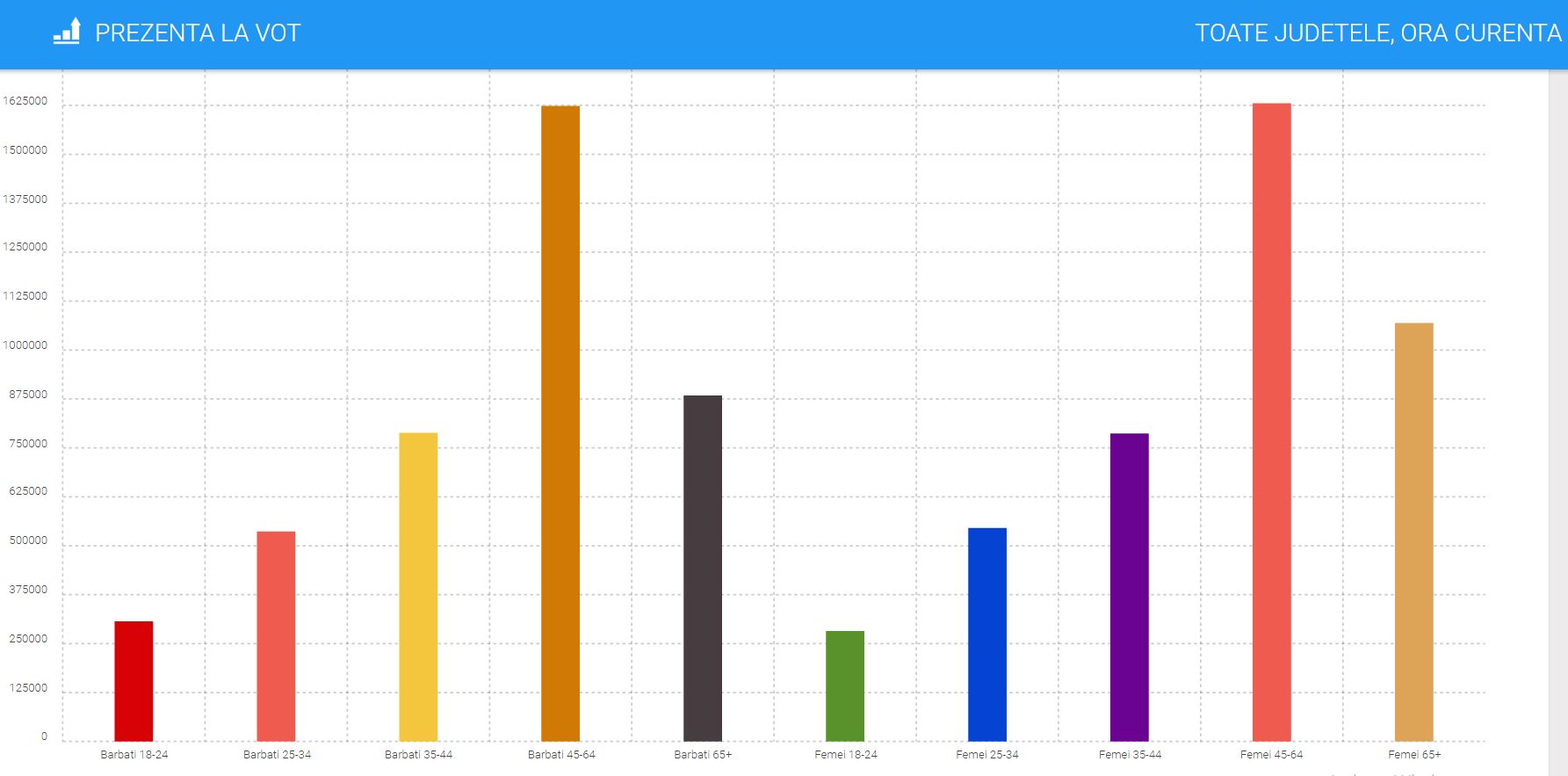 Procentele in randul tinerilor au cunoscut o crestere timida, cei mai activi ramanand cetatenii cu varsta cuprinsa intre 45 si 64 de ani.