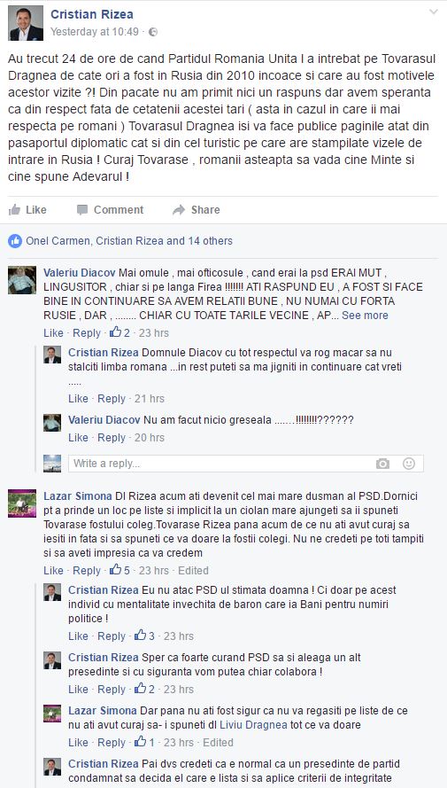 La doar trei zile dupa ce a parasit PSD, deputatul trimis in justitie pentru coruptie, trafic de influenta si scapat de arest de fostii sai colegi, Cristian Rizea, ii arunca presedintelui PSD din ce in ce mai multe atacuri de pe contul sau oficial de Facebook.