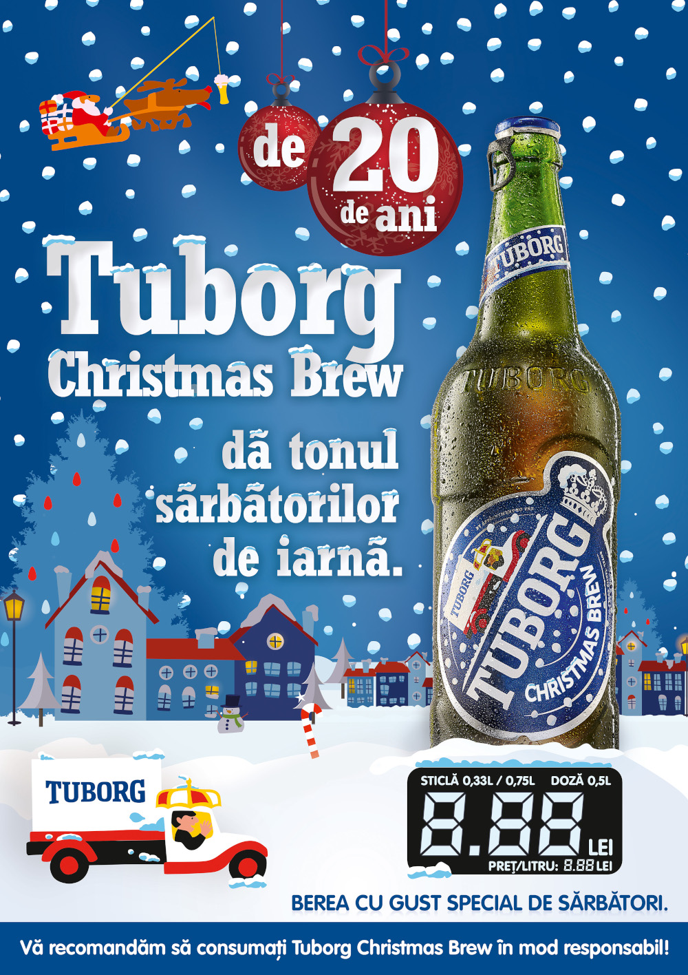 Singura bere din România în ediție specială de Crăciun, Tuborg Christmas Brew aniversează 20 de ani de prezență locală. Tuborg continuă tradiția instituită în anul 2000 și dă tonul sărbătorilor de iarnă, incepând cu prima vineri a lunii noiembrie, rămânând la raft pe toată perioada acestora.