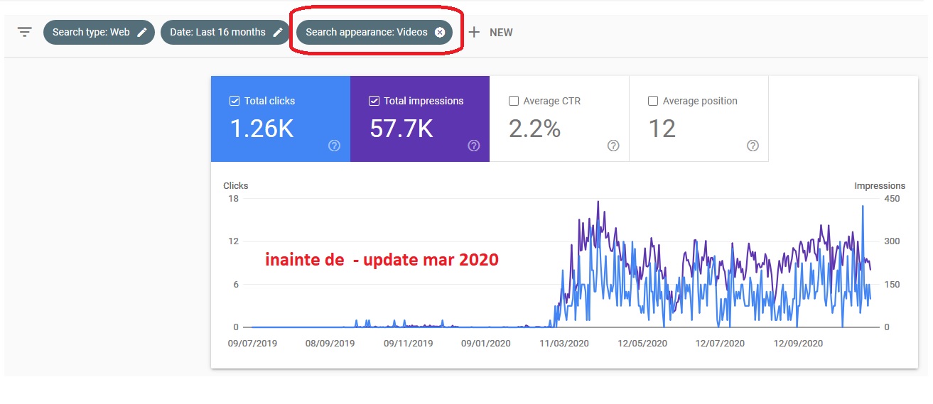 Primele semnale au fost deja trimise de Google inca din luna martie a acestui an. Dupa update-ul din martie, videoclipurile au inceput sa fie mult favorizate, asa cum poti vedea in imaginea de mai jos.