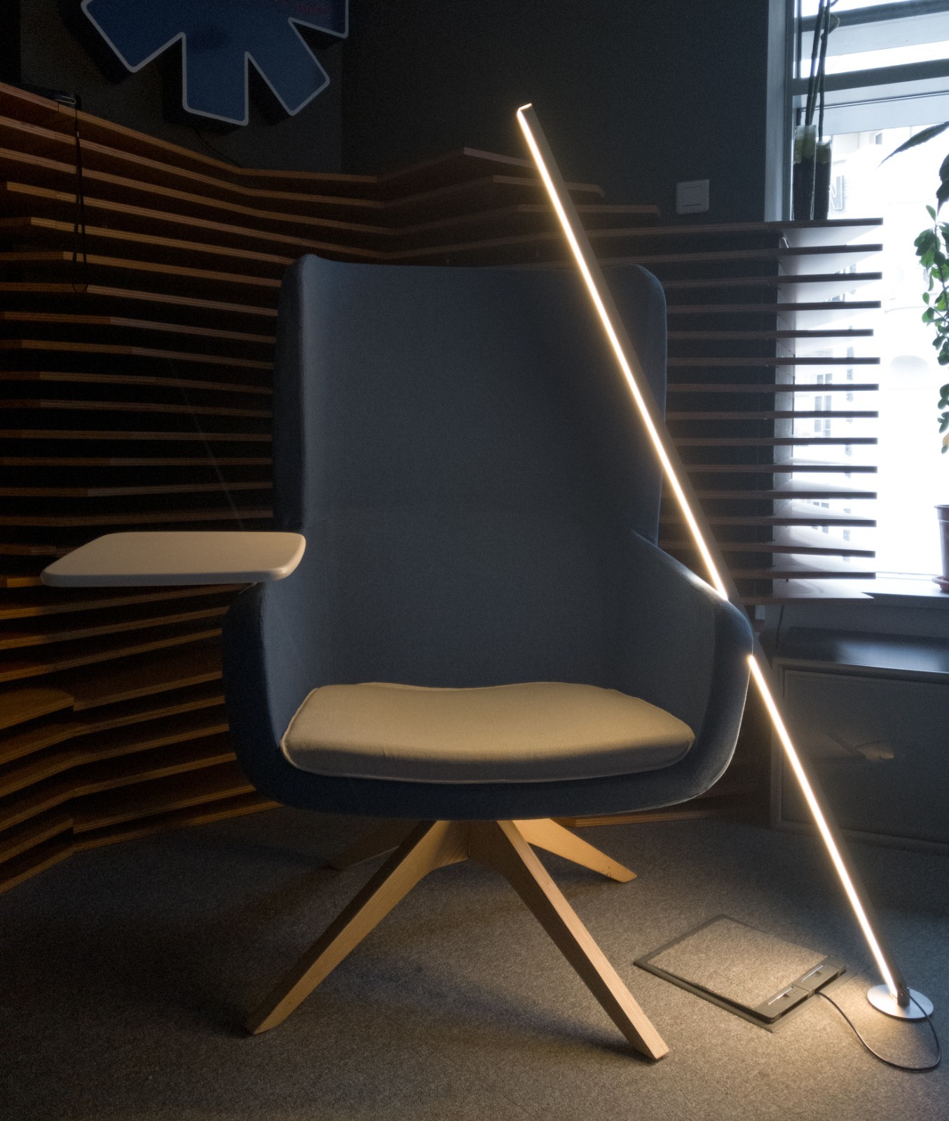 Este o lampă “ready-to-wear”, care poate fi ridicată și mutată atunci când este necesar. Corpul său din aluminiu, disponibil în diverse finisaje și cu LED-uri reglabile, este ușor și se potrivește foarte bine în contexte caracterizate de mobilier modern, precum și contemporan și clasic.