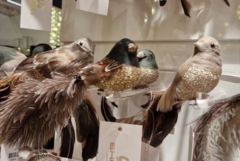 La expoziție am fost atrași de ornamente și decorațiuni moderne de Crăciun realizate din lemn pe brazii impodobiți. Am găsit calendare de advent din lemn elegante, sub forma unei case sau a unui Spărgător de nuci. Nu ne-a scăpat din atenție nici bradul de lemn realizat din lemn de drift. Au fost expuse și elemente din sticlă și metal, precum sfeșnicele din metal sau decorațiunile din metal cu reni. Vasele transparente cu o chaecina sau un copac de eucalipt aranjat nu au fost nici aici ceva ieșit din comun. Utilizarea textilelor a fost prezentată foarte interesant. Calendarele de Advent pline de imaginație, cu reprezentarea Sfântului Nicolae sau a Spărgătorului de nuci, cu siguranță nu scapă privirii. De asemenea, merită menționate figurinele Sfântului Nicolae și ale spiridușilor de Crăciun din întreaga lume sau renii de pluș. Aici și-au găsit loc și ornamentele din hârtie, foarte la modă în prezent, în formă de îngerași, stele, globuri de Crăciun sau brazi de Crăciun. Aspectul natural include, de asemenea, ornamente suspendate cu motive de reni, bufnițe, arici sau păsări.