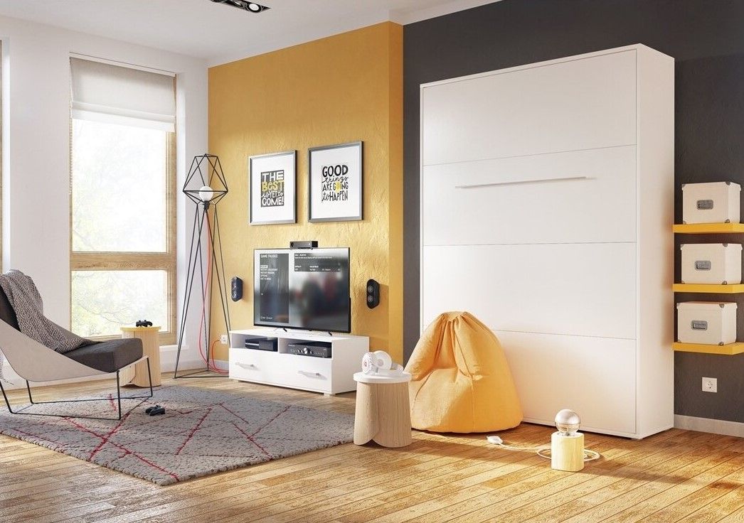 Pur și simplu se trage patul în jos din perete, unde este mascat într-un dulap, atunci când tu sau oaspeții tăi sunteți gata să vă retrageți pentru odihnă. Dimineața, patul se pliază cu ușurință pentru a elibera o parte semnificativă din spațiul camerei.