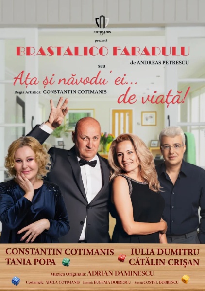 „BRASTALICO FABADULU sau Ața și năvodu’ ei… de viață!” aduce pe scenă o comedie cu muzică și emoție, în care iubirea și trădarea se întâlnesc într-o seară plină de surprize. Constantin Cotimanis și Tania Popa dau viață unui cuplu aflat la răscruce, iar apariția Iuliei Dumitru și a carismaticului Cătălin Crișan, în rolul său propriu, declanșează un carusel de întrebări, adevăruri ascunse și situații comice. Atmosfera este îmbogățită de muzica originală semnată de Adrian Daminescu, care adaugă spectacolului profunzime și rafinament.