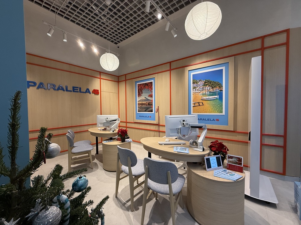 Agenția Paralela45 din ParkLake Shopping Center, deschisă din 20 decembrie, este un spațiu modern, cu un design contemporan, gândit pentru interacțiuni confortabile și eficiente. Agenția are o suprafață de 32 mp2 și este deservită de patru consultanți de turism, pregătiți să ofere recomandări personalizate și soluții complete de vacanță, de la sejururi și circuite, până la pachete personalizate sau pachete de turism intern.