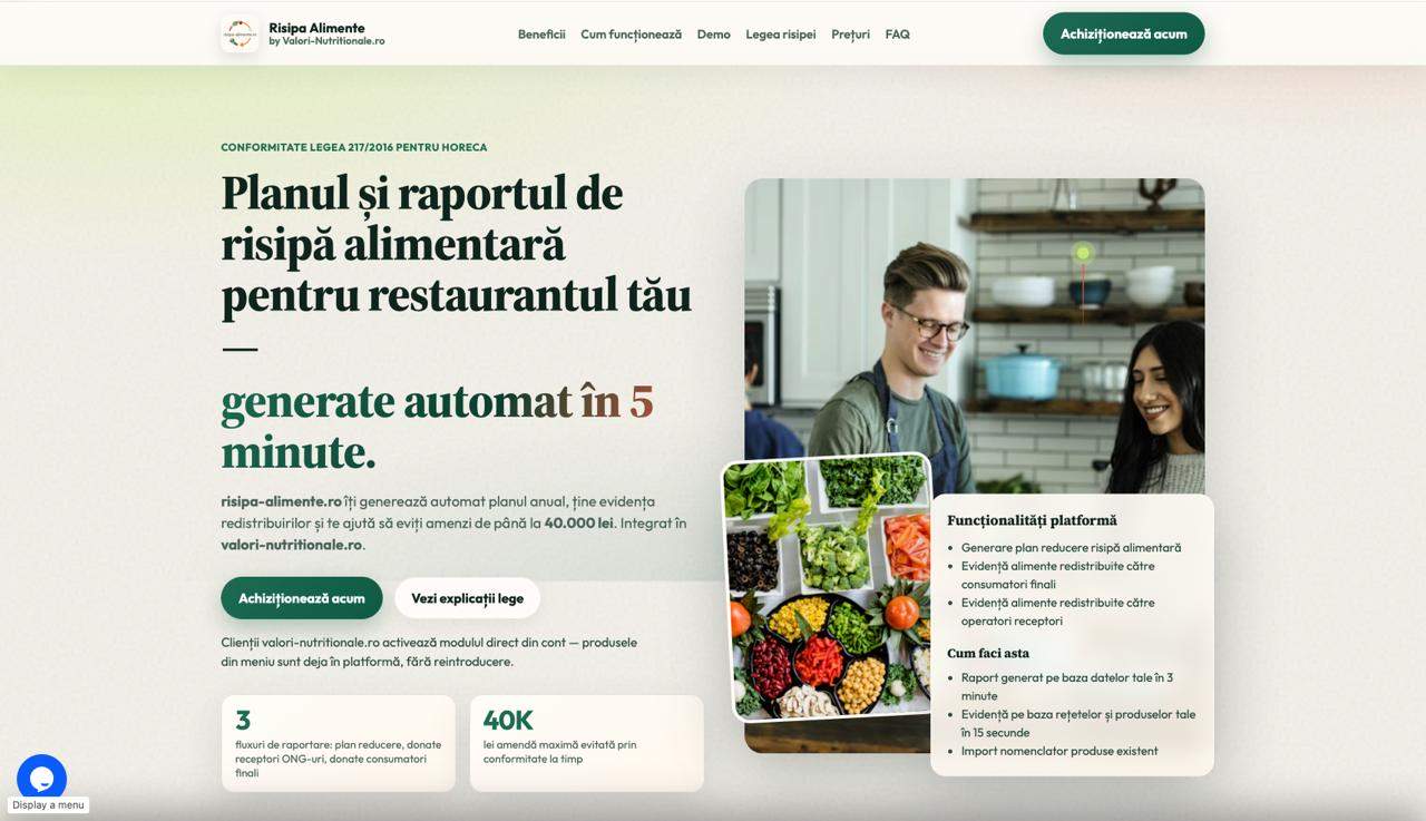Modulul risipa-alimente.ro, integrat acum în ecosistemul Valori Nutriționale, a fost gândit să elimine complet presiunea ultimei sute de metri. Acesta permite antreprenorilor să își elaboreze planul anual încă de pe acum, oferind claritate asupra măsurilor de implementat pe parcursul întregului an 2026. În loc să încerce să își amintească în martie 2027 ce produse au donat sau ce măsuri au luat în urmă cu un an, operatorii pot folosi platforma pentru a ține o evidență digitală, zilnică și precisă a tuturor redistribuirilor de alimente.