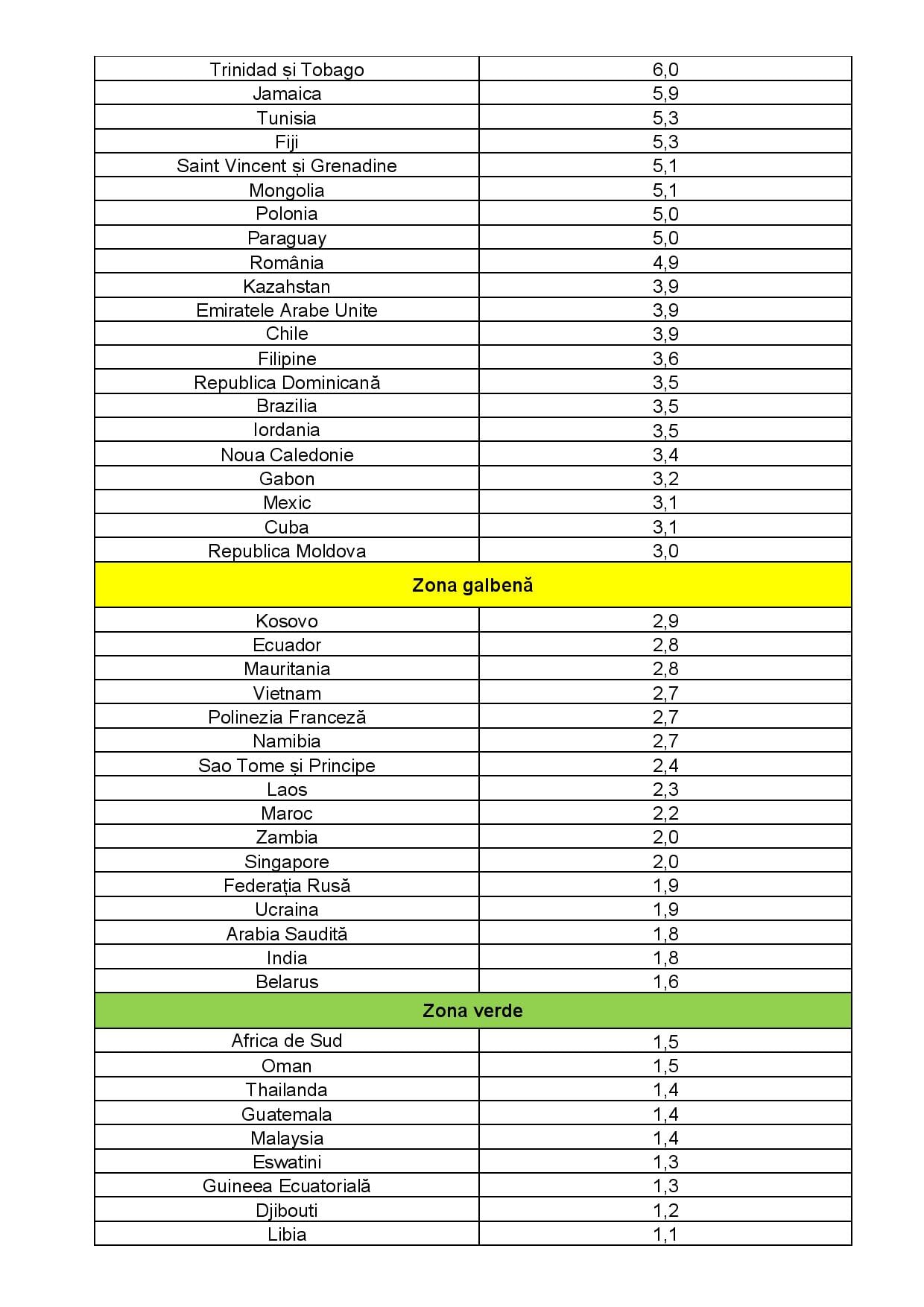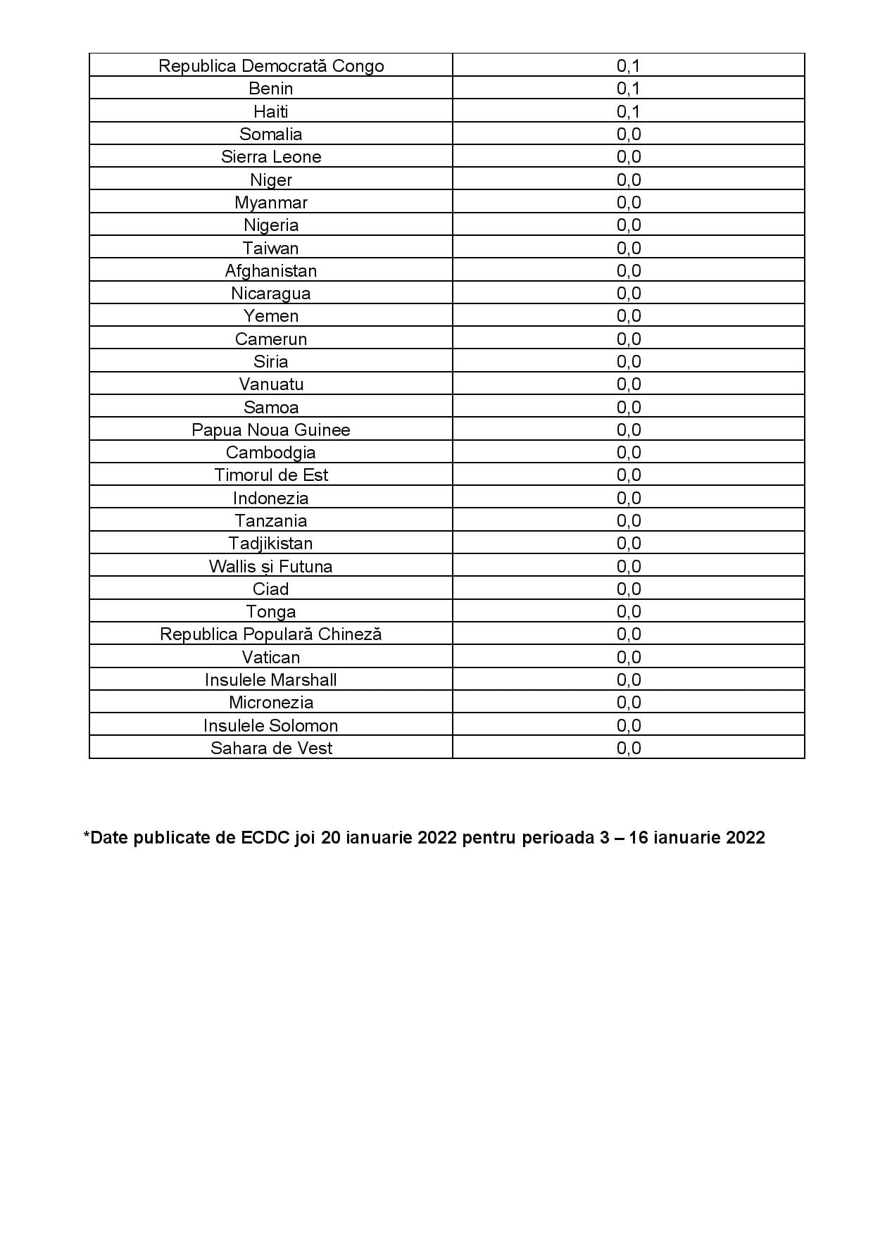 Art.1 – (1) Se aprobă Lista cu clasificarea ţărilor/teritoriilor în funcţie de rata de incidenţă cumulată, prevăzută în anexa care face parte integrantă din prezenta hotărâre, în vederea stabilirii persoanelor care sosesc în România din acestea şi cu privire la care se instituie măsura carantinei. Pagina 2 din 2 (2) Lista prevăzută la alin. (1), intră în vigoare începând cu data de 23.01.2022, ora 00:00.