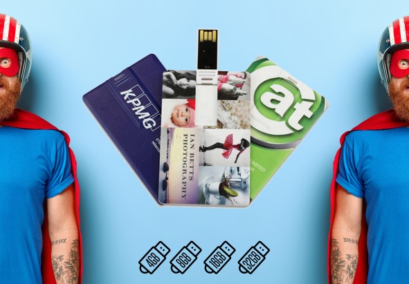 Unele dintre cele mai comandate produse din această categorie datorită suprafeței mari de personalizare care asigură vizibilitate mărcii sunt USB-urile tip card bancar.
