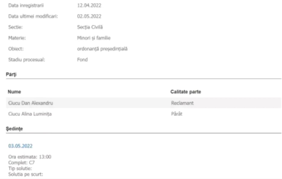 Pe portalul instanței de judecată apare cererea lui Alexandru Ciucu, care a depus o ordonanță președințială. S-ar părea că ruptura ar avea iz de „scandal”, motivul fiind custodia celor două fete pe care aceștia le au împreună.