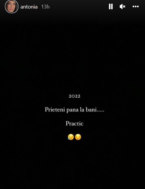 ”2022. Prieteni până la bani, practic”, este mesajul pe care Antonia l-a transmis în mediul online.