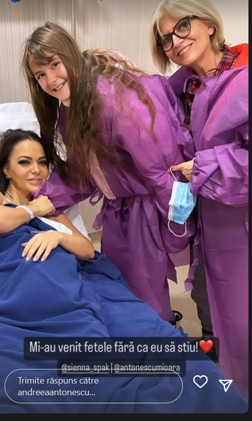 Nu există fericire mai mare decât cea pe care a simțit-o în urmă cu doar câteva ore și nimic nu se compară cu emoțiile pe care le-a avut și din cauza cărora i-a crescut tensiunea la 18, ea nefiind de regulă o persoană care se confruntă cu astfel de probleme. Și-a dorit să își vadă copilul, să fie sănătoasă, dar ceea ce a dat-o cel mai tare peste cap a fost surpriza pe care fiica ei cea mare, Sienna, dar și mama acesteia i-au pregătit-o. Ele au mers să o viziteze la spital, venind în țară special pentru acest moment important, iar Andreea Antonescu a rămas mască și a recunoscut că a trăit fericirea supremă.