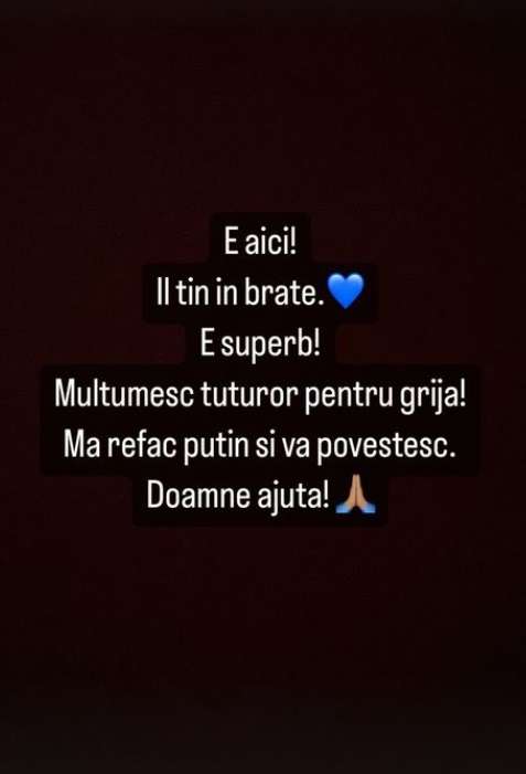 „E aici! Îl țin în brațe. E superb! Mulțumesc tuturor pentru grijă! Mă refac puțin și vă povestesc. Doamne ajută!”, a scris Theo Rose, la Story.
