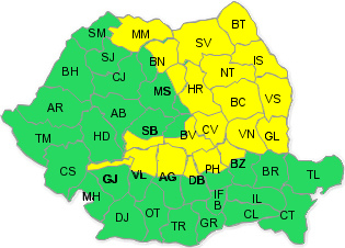 Incepand de joi de la ora 06.00 pana vineri la ora 12.00 in Carpatii Orientali si Meridionali si in zonele deluroase aferente vor predomina ninsorile si local se va depune strat de zapada. In Moldova va ploua abundent in cursul zilei de joi, 20 noiembrie cand local se vor cumula peste 25 l/mp si izolat 40...50 l/mp, apoi precipitatiile vor deveni mixte si vor slabi in intensitate. Vantul va prezenta intensificari temporare in cea mai mare parte a tarii, dar cu viteze mai mari in regiunile estice unde vor fi rafale de peste 55 km/h, iar pe crestele montane va sufla cu 70...80 km/h, viscolind temporar ninsoarea.