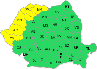 Judetele vizate sunt Arad, Timis, Bihor, Salaj, Satu Mare si Maramures. Maxime termice de 35 - 36 de grade vor fi si in celelalte regiuni, dar pe arii restranse. In zilele de marti si miercuri, valul de caldura se va intensifica si se va extinde in toata tara, mai atentioneaza ANM.