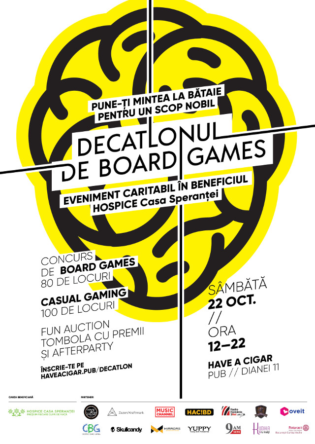 “Competitiile sportive de tip maraton sunt tot mai populare in Romania si sute de alergatori decid sa sustina cauza HOSPICE Casa Sperantei si sa stranga bani pentru pacientii cu boli incurabile. Exista insa foarte multi oameni care, din diferite motive, nu pot sa alerge, dar vor sa ajute, la randul lor. Tocmai de aceea ne-am gandit sa organizam un decatlon de board games care sa atraga in special publicul tanar. Noi, la HOSPICE, credem foarte mult in tineri si ii invitam sa ni se alature, pentru o cauza nobila”, a declarat Mirela Nemtanu, director executiv al HOSPICE Casa Sperantei.