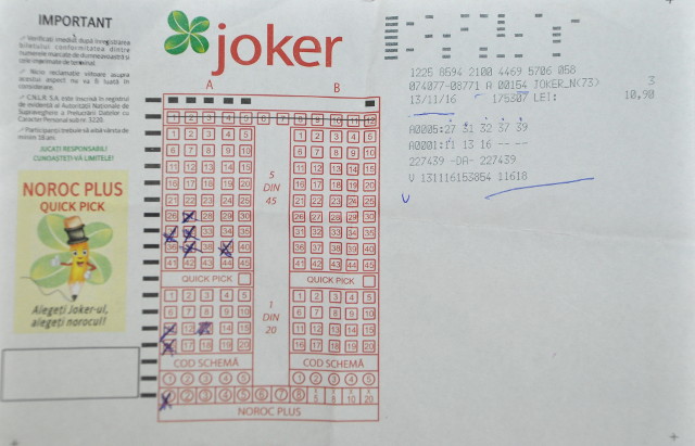 Joaca de fiecare data la aceeasi agentie la care a jucat, de altfel si biletul norocos (agentia 74-077 din sector 4, Bucuresti). Pentru tragerea care i-a adus marele castig a jucat chiar duminica, 13 noiembrie, foarte aproape de ora inchiderii jocurilor. A aflat ca este castigatoare luni dimineata cand si-a verificat numerele de pe site-ul Loteriei Romane.