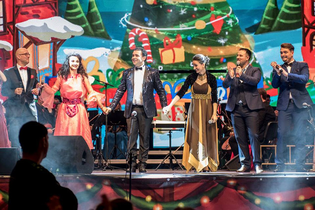 Pe scena au urcat soprana Felicia Filip, tanara solista Laura Bretan (Chicago) – castigatoarea concursului “Romanii au Talent” – cunoscuta interpreta Alina Eremia, baritonul Iordache Basalic, prim-solist al Operei Nationale din Bucuresti, prim-balerinii Corina Dumitrescu si Gigel Ungureanu, dansatorul flamenco Lucas Molina (Buenos Aires), violonistul de reputatie mondiala Mario Hossen (Viena), Ionel Tudor Band, Orchestra Simfonica Bucuresti (dirijori: Gheorghe Iliuta si Andrei Tudor), alaturi de artistii lirici si balerinii Operei Comice pentru Copii si Corurile Cantus Mundi din tara, dirijate de Cezar Verlan.