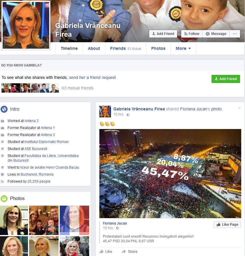 Desi primarul-general al Bucurestiului a sters imaginea de pe contul public de facebook, aceasta a ramas in continuare pe contul ei personal chiar si la ora transmiterii acestei stiri.