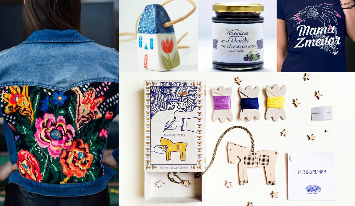 Geaca brodata, Perspective Atelier | Pandantiv casuta ceramica, Little Houses | Dulceata naturala de cirese amare, Veronica | Tricou ilustratie “Mama zmeilor”, Colorescu | Set pandantiv personalizabil cu broderie DIY, Cosanzeaza - Disponibile si online pe www.breslo.ro.