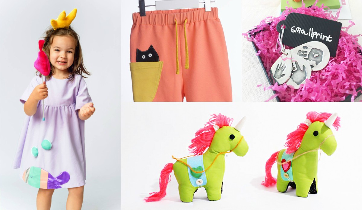 Rochita cu pestisor, Armonica | Pantalonasi cu buzunar si pisica, Atelier MissH | Bijuterii cu amprenta copilului, Smallprint | Inorogi textili, Casuta cu cerdac - Disponibile si online pe www.breslo.ro.