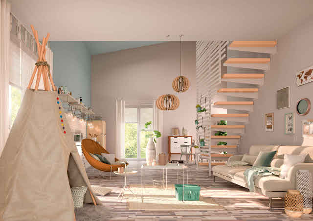 Comoditatea si confortul se imbina perfect in sugestia de ambient Nordic Atmosphere. Dorinta de simplitate si natura care infloreste, precum si buna dispozitie, caracterizeaza aceasta propunere de amenajare. Naturaletea scandinava este bine pusa in valoare, iar spatiul propus este luminos si prietenos. Compartimentarea zonelor din locuinta este realizata prin culori in nuante pastelate, lemnul deschis la culoare subliniaza atmosfera linistita, in timp ce diversitatea corpurilor de iluminat confera un sarm nostalgic. Totul este familiar in acest ambient, iar confortul impus face ca viata sa fie foarte frumoasa.