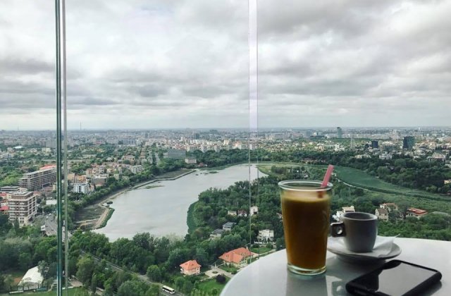 Restaurantul, cu o capacitate de peste 200 de locuri, ofera o vedere unica a orasului in care se disting toate cladirile impozante din peisajul Capitalei si, in zilele cu cer senin, chiar profilul muntilor Bucegi.