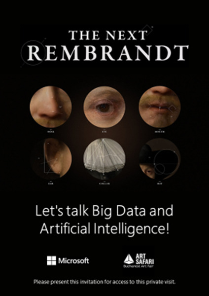 Un proiect al ING Bank Olanda impreuna cu agentia JWT si Microsoft, „Urmatorul Rembrandt” este adus la Bucuresti de Microsoft Romania, iar experienta e disponibila vizitatorilor intre 19 si 21 mai, la pavilionul Art Safari Exeprience, Galeriile Kretzulescu, Calea Victoriei, nr. 45. Microsoft a asigurat, prin platforma de cloud Azure, considerabilele resurse computationale si de stocare necesare realizarii acestui proiect.