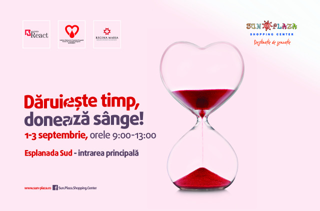Astfel, persoanele care doresc sa doneze sange pentru pacientii din spitale sunt asteptate la intrarea principala din Sun Plaza – Esplanada Sud, in perioada 1-3 septembrie, intre orele 9.00 si 13.00.
