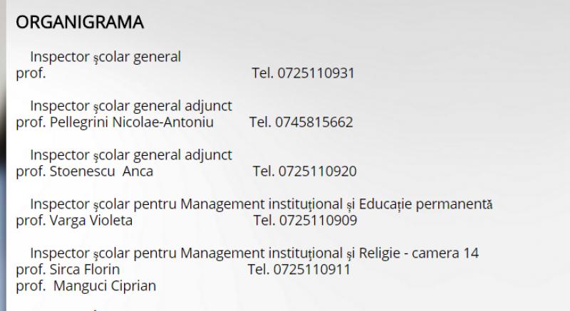 Numirea Violetei Varga a aparut si in organigrama publicata pe site-ul Inspectoratului Judetean Arad, scrie Digi24.