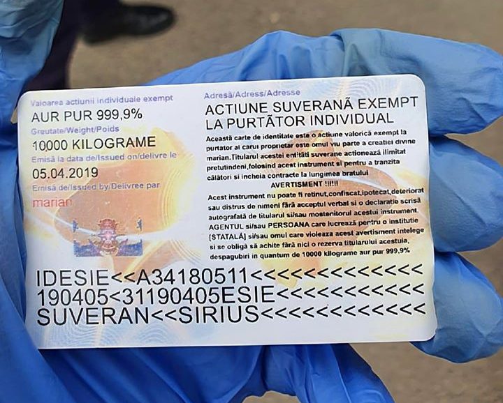 Într-o postare pe Facebook, Jandarmeria anunță că, în cursul zilei de 21 aprilie, un echipaj a depistat un bărbat ce a folosit un document intitulat ”ENTITATEA SUVERANĂ INDIVIDUALĂ EXEMPT” pentru a se legitima.