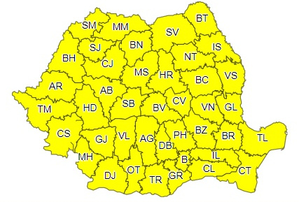 Administrația Națională de Meteorologie (ANM) a emis o atenționare Cod galben de ploi torențiale, vijelii și grindină, în toată țara, valabilă de joi, 11 iunie, până sâmbătă, 13 iunie, ora 10:00.