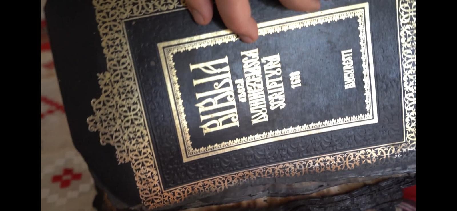 Aici am fost așadar întâmpinați de părintele Ganciu. Are alături și putinele cărți și manuscrise rămase ca prin miracol după incendiu. Biblii - printre care primul document al limbii române moderne, celebra ”Biblie de la București” din 1688 re-editată după 300 de ani în 1988 - și manuscrisele lui. Lucrarea de masterat, studii, notițe migălite peste dicționare și cărți de lingvistică și istorie, acum sunt încă lizibile și recuperabile. Un trecut care s-a încăpățânat să reziste. 25 de ani de muncă în care părintele a cercetat originile poporului român.